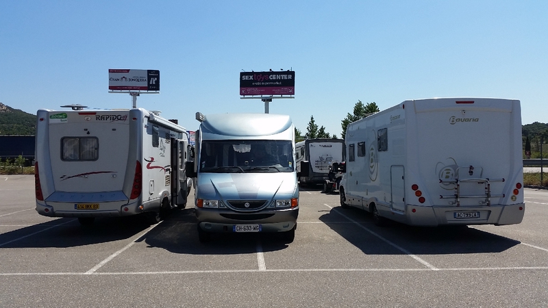C'est sur 2 parkings différents que nous avons stationné. Le premier à côté d'un immense centre commercial et des stations services (avec GPL dispo) et le second près de la sortie de la Jonquera pour les courses indispensables (cigarettes, alcool, viande...). Je mets que les points GPS du second parking car il est gardé et on peut même y passer la nuit et faire un plein d'eau. Pas de vidange ni électricté.