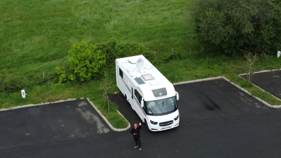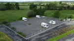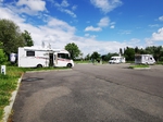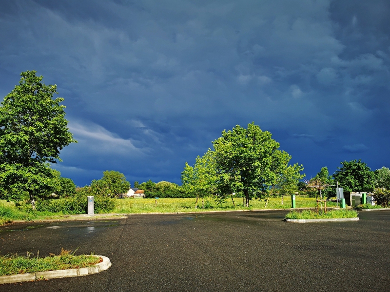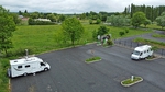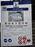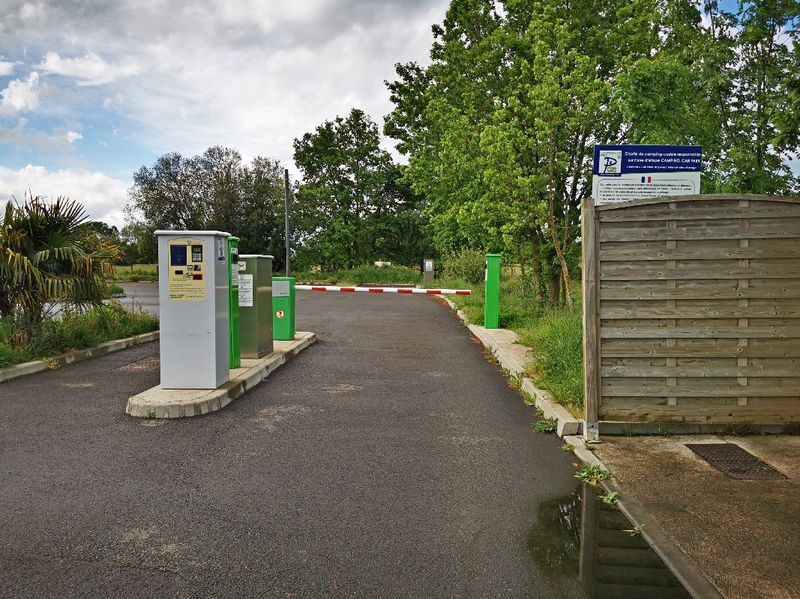 Emplacements non délimités mais le plan à l'entrée est très explicite. Sol plutôt plat en bitume. Bien en cas de pluie, chaud au soleil. Située à 1 km du chateau et 1.2 km du centre ville. Supermarché à 3 kms.