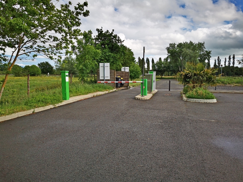 Entrée facile. Containers pourbelles à l'entrée et zone de services face à l'entrée. La zone de services est bien placée car pas de gène pour la circulation si occupée. En revanche, la borne est très mal orientée pour vider la cassette.