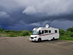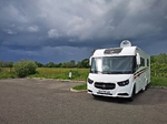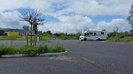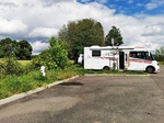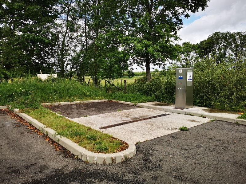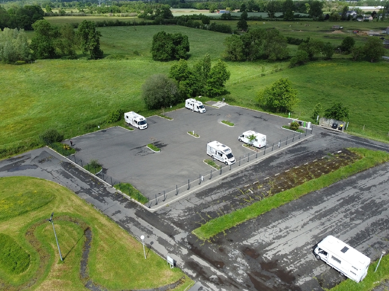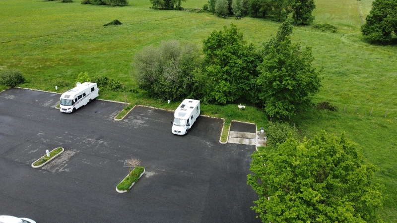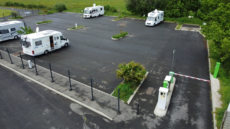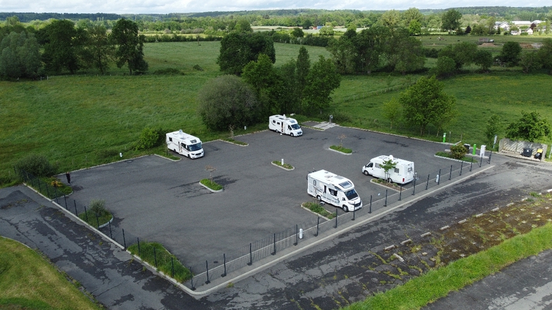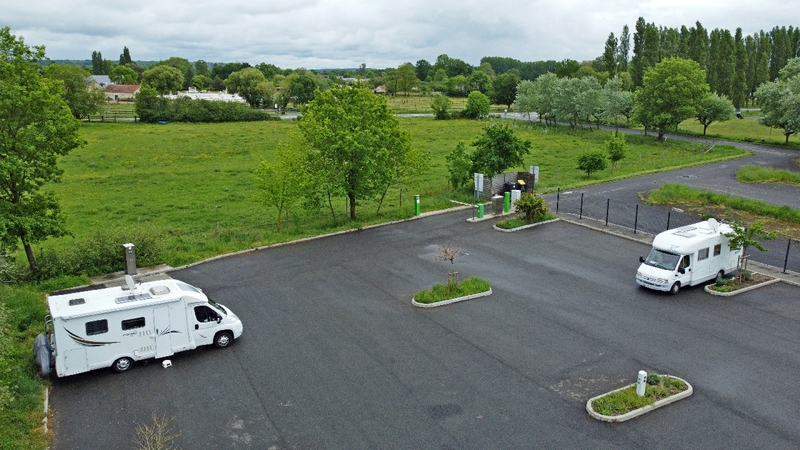 Aire sans beaucoup d'attrait mais bien située pour visiter le village et son château. Emplacements de longueur et largeur moyennes, non délimités, sur bitume. Pas d'ombre pour le moment. Assez calme le jour et très calme la nuit.