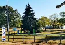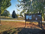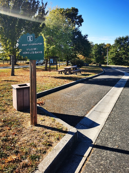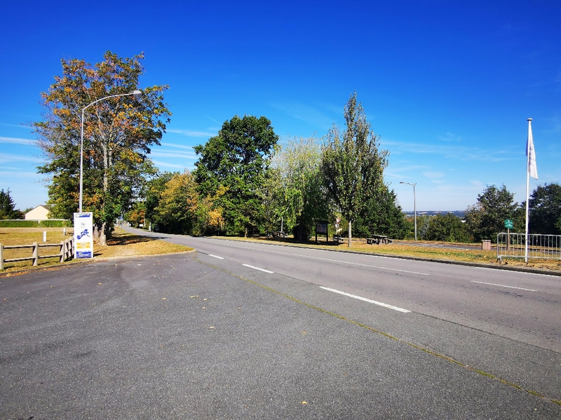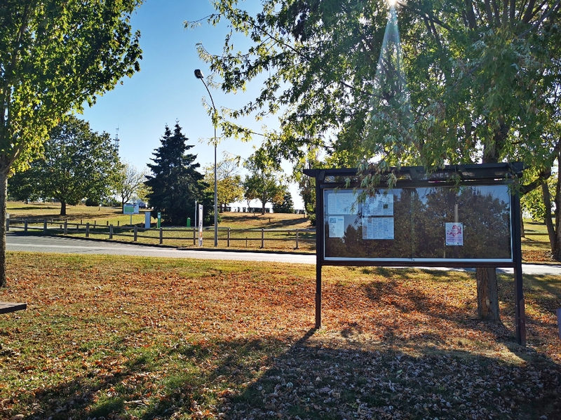 En face de l'entrée, de l'autre côté de la route se trouve un panneau d'informations.