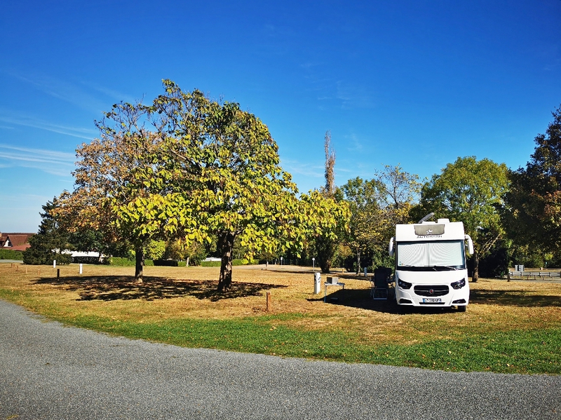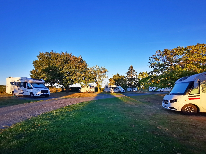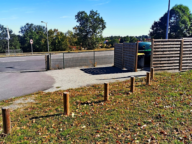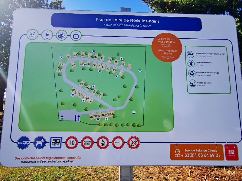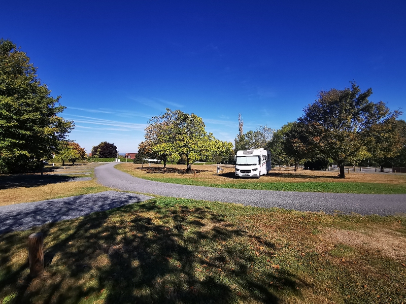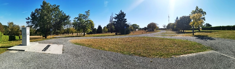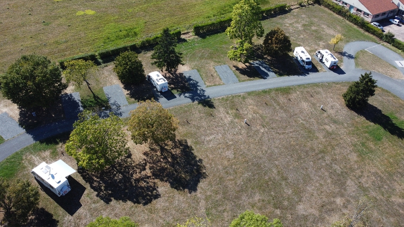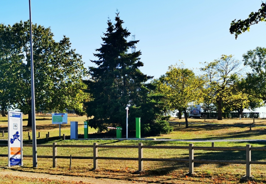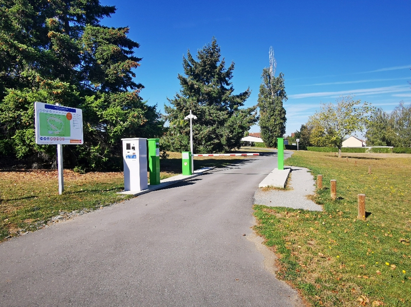 Accès aisé pour cette aire malgré les deux piliers en béton avant la barrière. L'aire comporte plusieurs niveaux. Sur le haut, les emplacements sont sécurisés et on est moins gêné par les bruits de la route. Les containers poubelles sont à l'entrée de l'aire et la zone de services sur le haut de l'aire.