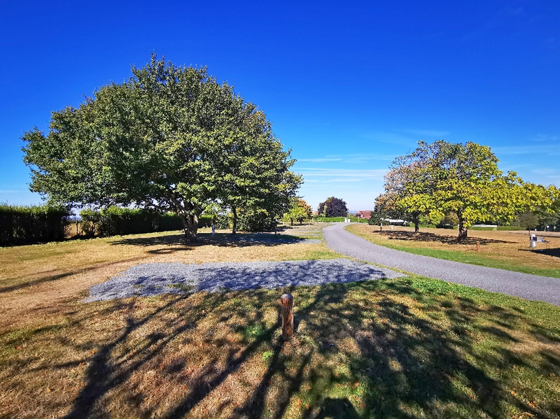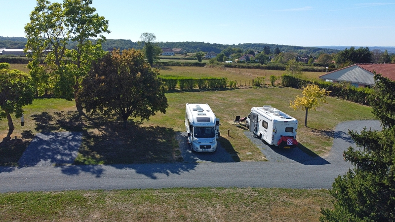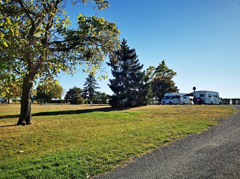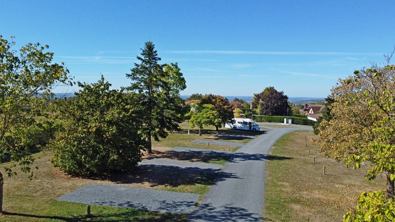 Pour les emplacements, les plus plats et sécurisés en cas de pluie sont ceux du haut. Tous les autres sont sur herbes et très très en pente. Prévoir des cales...
