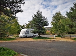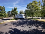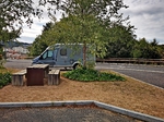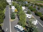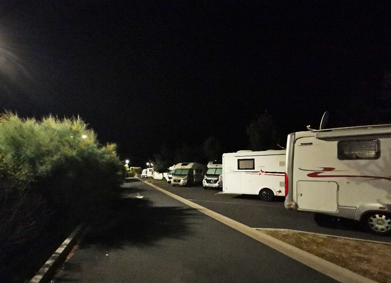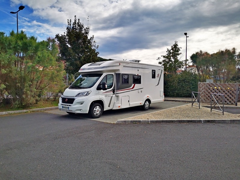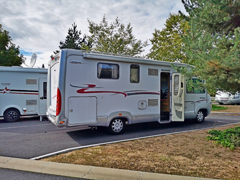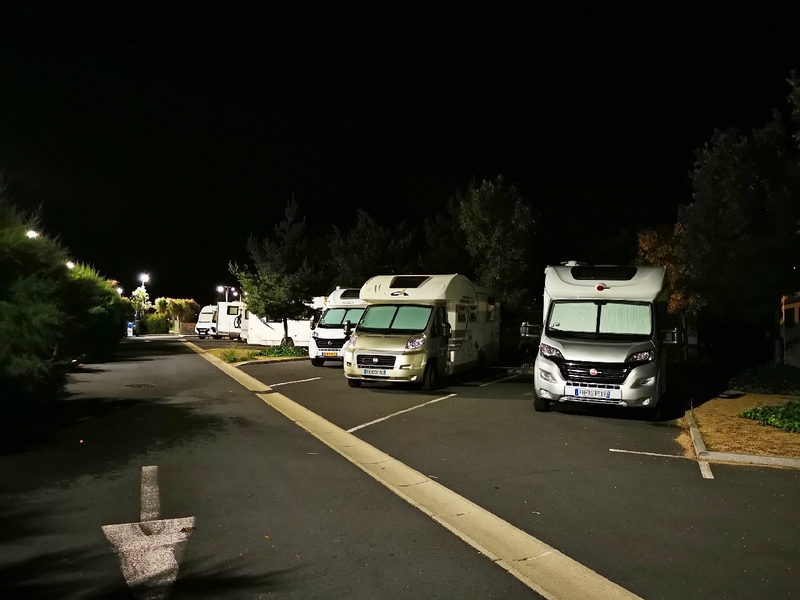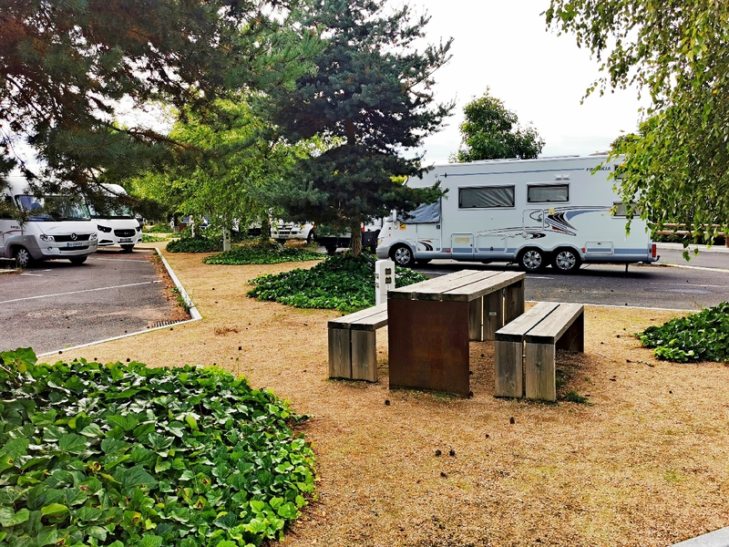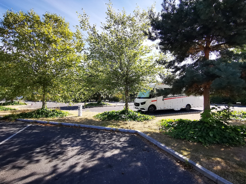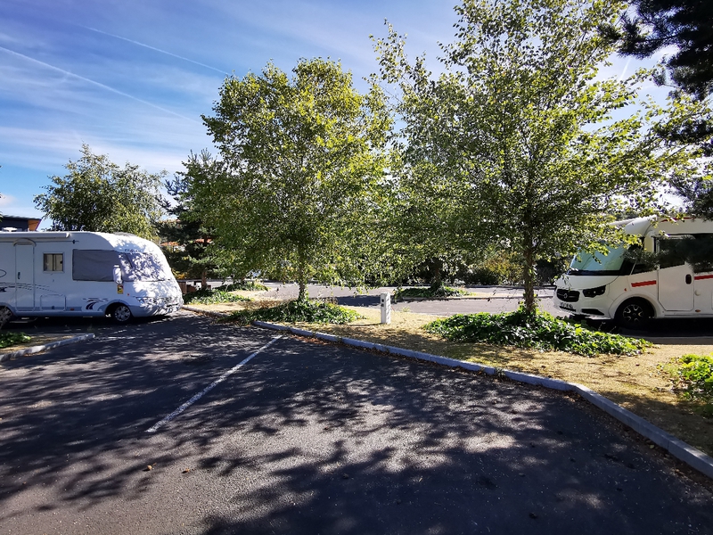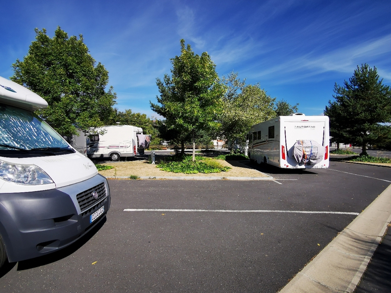 Les emplacements sur bitume sont délimités. Ils manquent de largeur pour éventuellement manger dehors. Deux ou trois places XXL sur le fond de l'aire. Présence de quelques tables pique-nique sous les arbres de la bande centrale. Belle vue sur la ville côté cathédrale. Bon éclairage de nuit, peut-être même un peu trop.