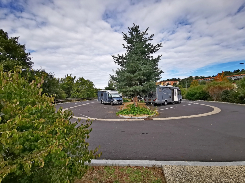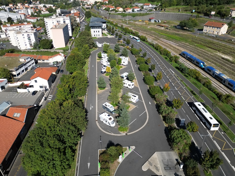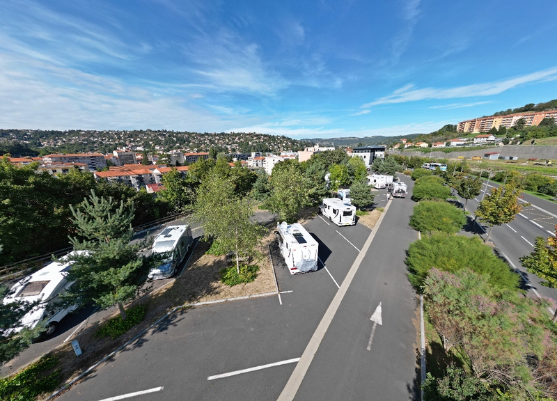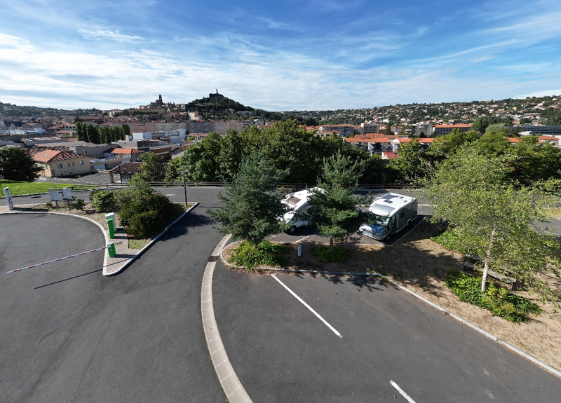 Facile à trouver, cette aire en pleine ville permet de visiter le Puy en Velay à pied ou avec la navette. Sur bitume, bien arborée et très propre, comme l'ensemble de la ville d'ailleurs. La proximité de la gare ferroviaire est moins gênante que ce qu'on pourrait croire. Une aire idéale pour une étape d'un ou deux jours.