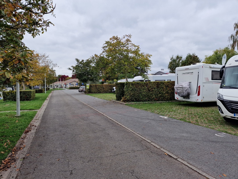 Pour se positionner, c'est simple. Pas d'entrée, pas de sortie, pas de barrière. En revanche, il y a un règlement qu'il faut respecter. Un panneau donne un QR barre où il faut s'inscrire. Durée du séjour limité à 72 heures. Les emplacements sont de tailles correctes. Cette aire ne propose