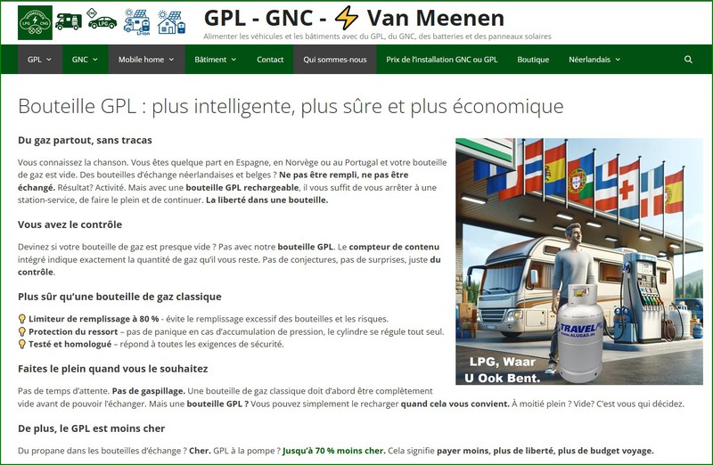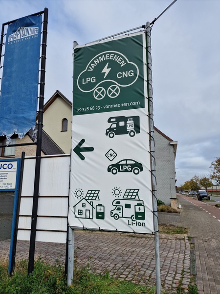 Cette aire se trouve à 3 kms du spécialiste accessoires et entretien pour camping cars VAN MEENEN. Une des spécialités est l'installation de systèmes GPL (bouteilles ou réservoirs). Une bouteille GPL doit être vérifiée, ré-éprouvée, tous les 10 ans maximum. C'est ce que j'ai fait avec la mienne après avoir pris rendez-vous et qui m'a été rendue le lendemain matin. J'en ai également profité pour changer les lyres et installer une sangle de maintien métallique.