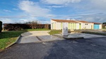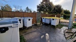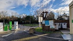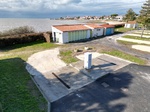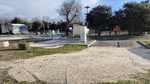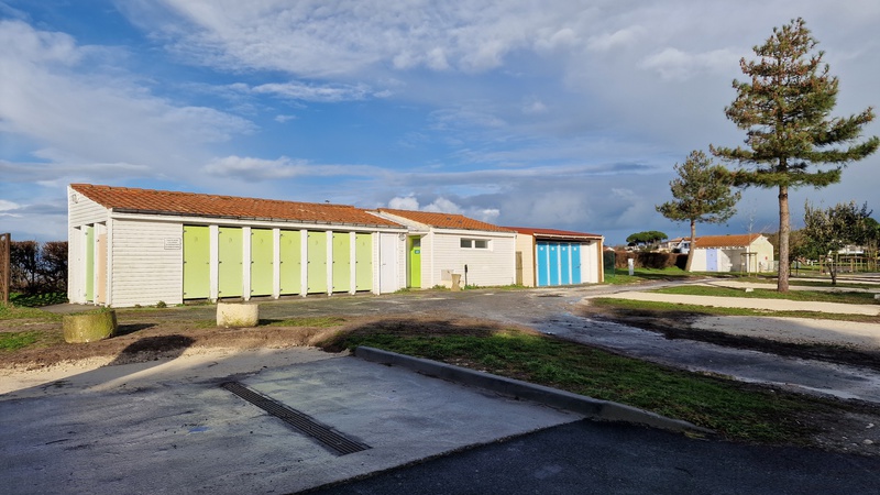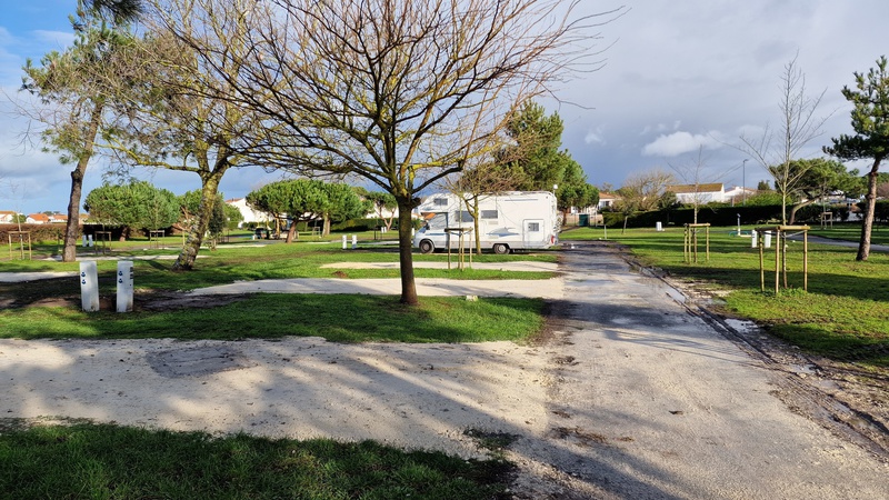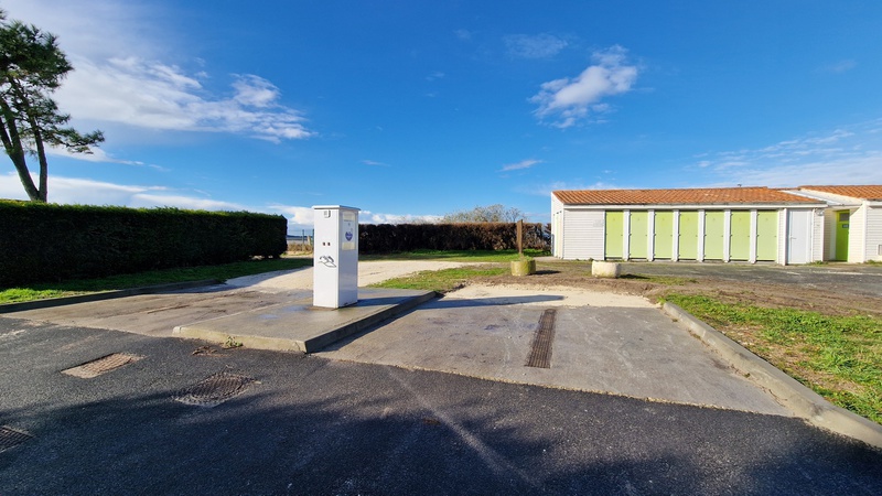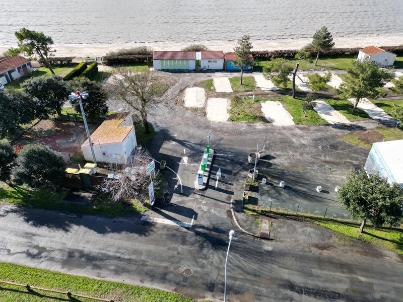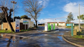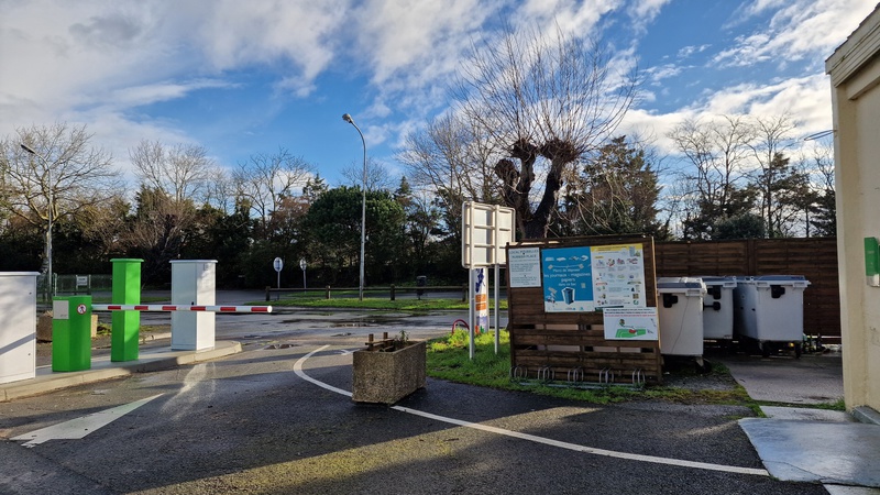 L'entrée et la sortie sont faciles avec barrières différenciées. Les containers poubelles sont à gauche en entrant et la double zone de services sur la gauche après l'entrée.