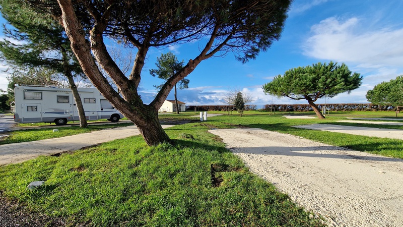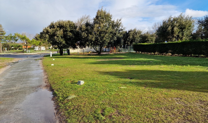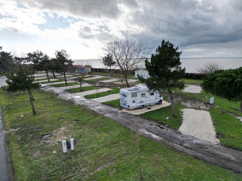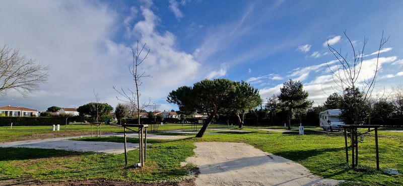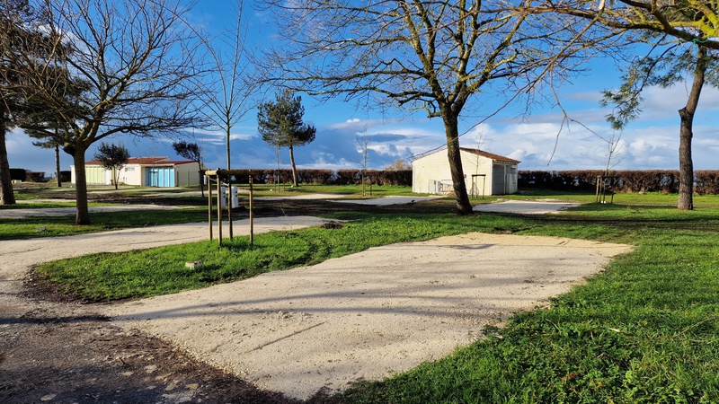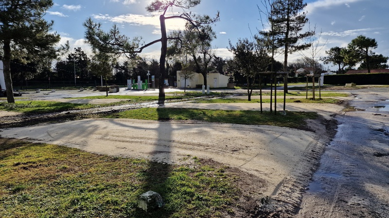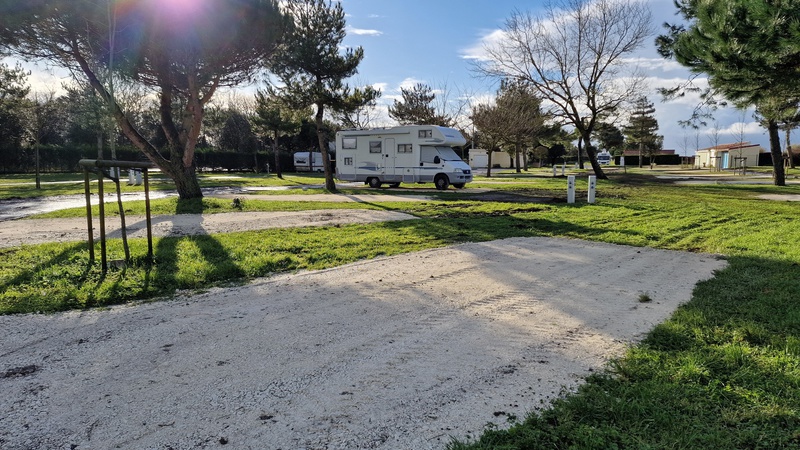 Le camping est divisé en deux parties. A gauche, les emplacements sur herbe et à droite les emplacements récemment stabilisés pour se poser en cas de fortes pluies. Le batiment sanitaires est au centre et n'est ouvert qu'en haute saison (Voir les dates sur l'application CCP).